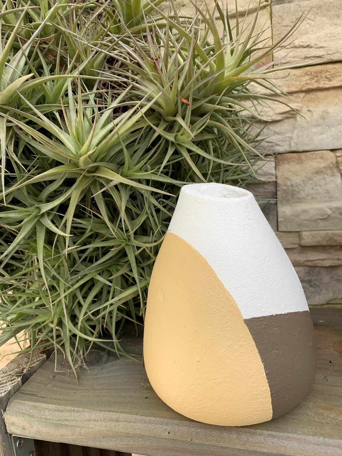 Vases en ciment Découvrez ma collection de vases en ciment originaux, créations uniques alliant couleurs et textures. Couleurs : Blanc et marrons